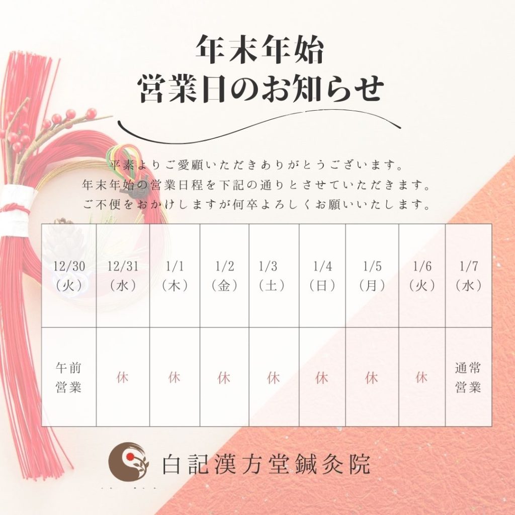 年末年始営業日のお知らせ