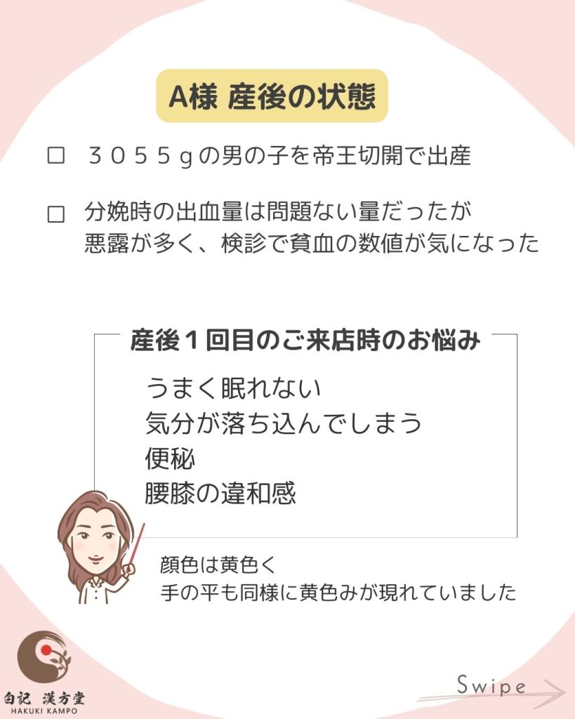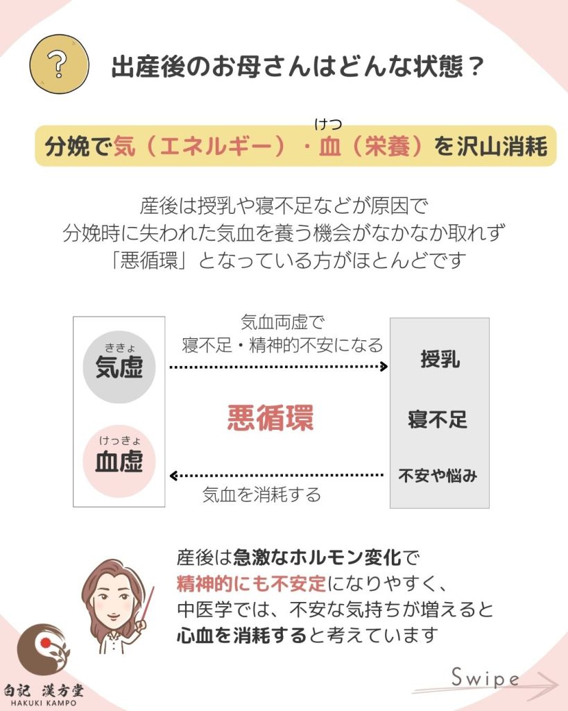 分娩時に消耗した気血をしっかり補えず、